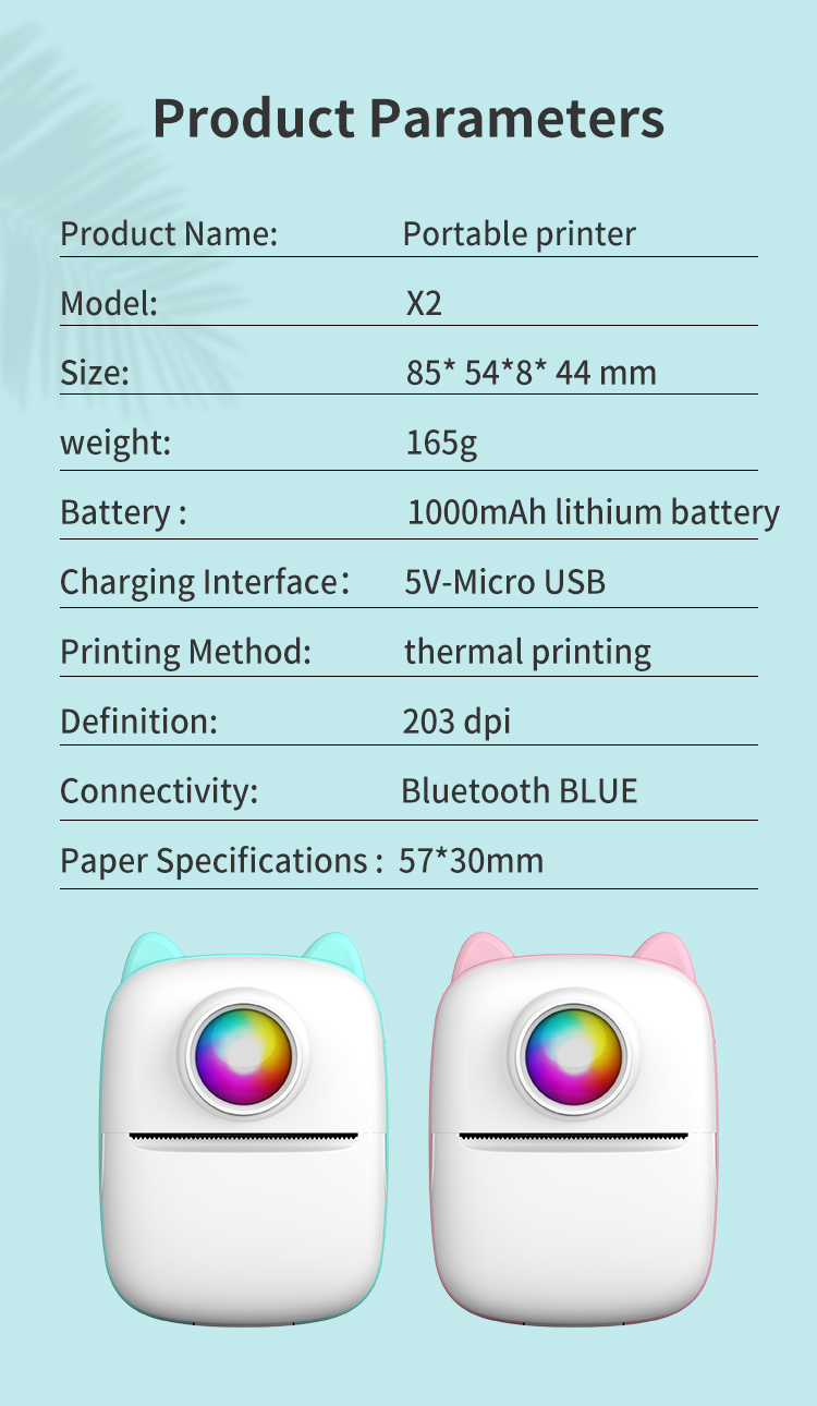 X2不干胶小型便携式热敏标签照片打印机口袋学生作业迷你错题打印机