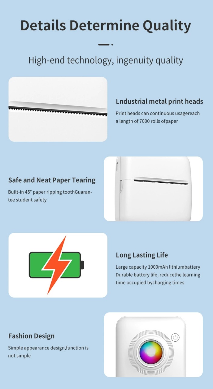 出厂标配:主机+充电线+说明书+打印纸1卷